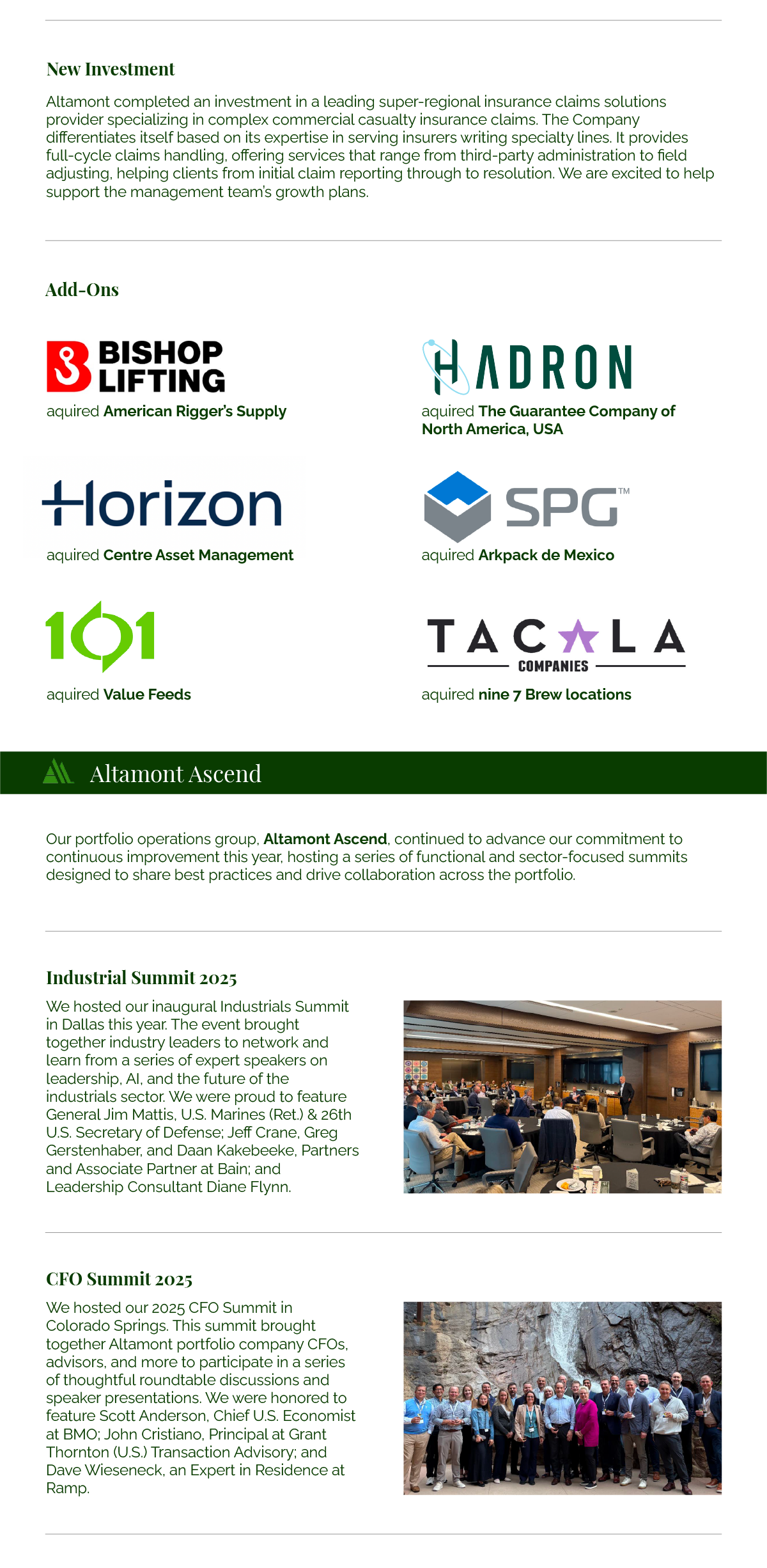 “Altamont is honored to be recognized as a Top 50 Private Equity Firm in the Middle Market,” said Kristin Johnson, Managing Director, Business Development at Altamont. “This recognition reflects our commitment to partnering with management teams to drive long-term growth and create lasting value across our partnerships.”